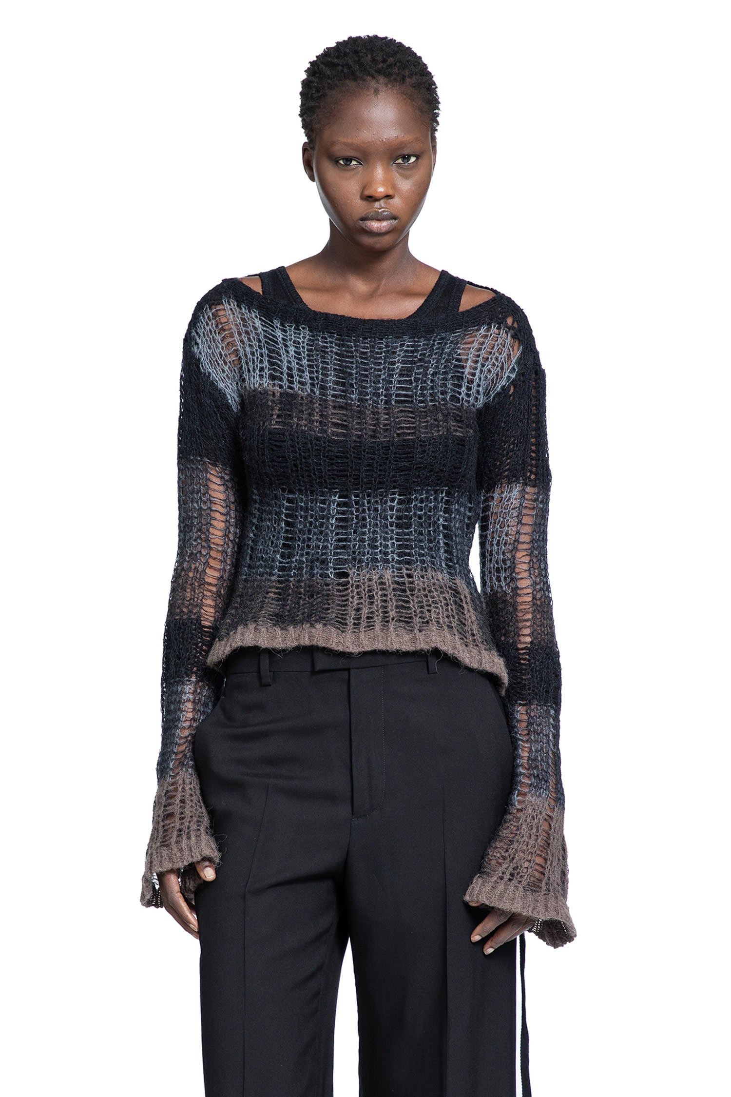 DESCRIPTION - Runway style - Multicolor - Striped alpaca wool ladder stitch knit - Boat neck - Cropped hem - Flounced back - Ribbed hem and cuffs - Slim boxy fit DETAILS - Made in: Italy - Composition: 45% Alpaca 36% Polyamide 19% Wool - Model code: B0013478KN077 999 - Item ID: 9759832277334 SIZE & FIT Model wears size S Model Height 177 cm Bust 74 cm Waist 58 cm Hips 85 cm