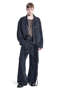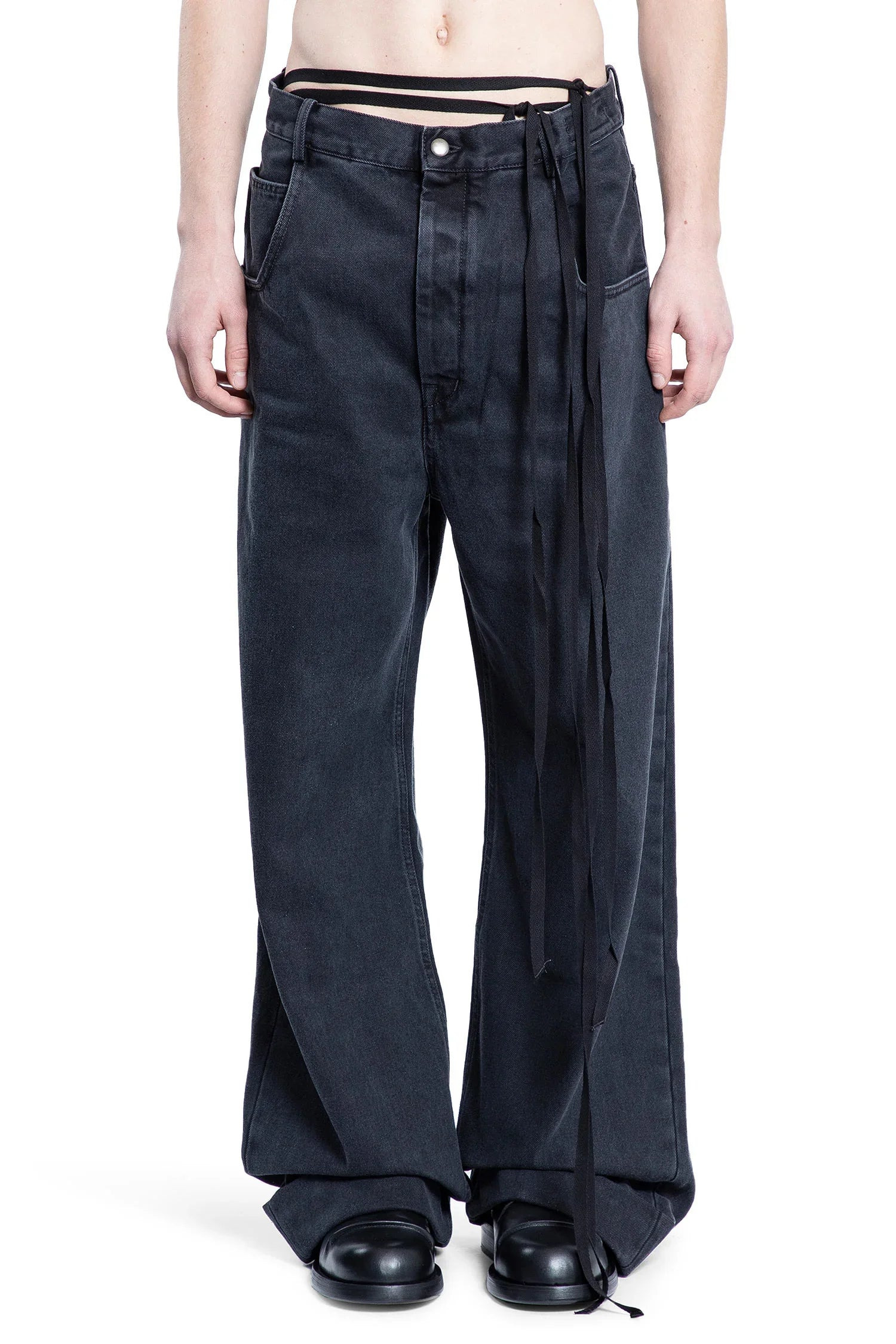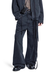 DESCRIPTION - Grey - Faded denim - Belt holes - Removable signature grosgrain ribbon - Button closure - 5 pockets - Baggy fit - The fit of this item is oversized. Keep this in mind when choosing your size. Consider purchasing two sizes down. - It can be worn as a regular fit using the internal button adjustment. DETAILS - Made in: Italy - Composition: 100% Cotton - Model code: B0010308FA039 070 - Item ID: 7427400106162 SIZE & FIT Model wears italian size 46 that deliberately fits oversize for style purposes. For a regular fit, please consider taking a size downModel wears size 46 Model Height 187 cm Chest 90 cm Waist 73 cm Hips 92 cm