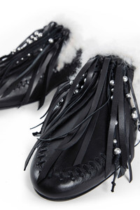 DESCRIPTION - Black - Soft leather - Hand-braided trim - Fringed front with metal beads - Open back - Shearling lining - Leather sole DETAILS - Made in: Italy - Composition: 100% Bovine Leather - Model code: B0013365LT170 099 - Item ID: 9858731901270