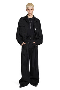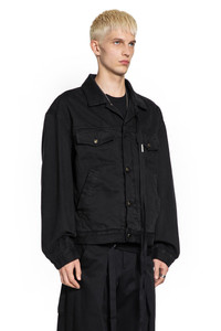 DESCRIPTION - Black - Cotton denim - Notched collar - Removable signature grosgrain ribbon - Button closure - Button flap chest pockets - Side pockets - Dropped shoulders - Buttoned cuffs - Oversize boxy fit - The fit of this item is oversize. If you prefer a narrow fit, consider purchasing this item two sizes down from your usual size. DETAILS - Made in: Italy - Composition: 100% Cotton - Model code: B0010290FA038 099 - Item ID: 9887516819798 SIZE & FIT Model wears size 48 model height 189 cm chest 88 cm waist 73 cm hips 89 cm
