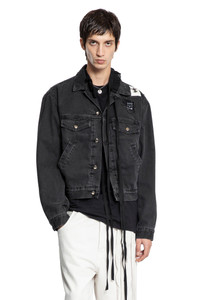 DESCRIPTION - Black - Distressed denim - Raw-edge graphic patches - Collar - Removable signature grosrain ribbon - Button closure - Button flap chest pockets - Side pockets - Dropped shoulders - Buttoned cuffs - Regular boxy fit DETAILS - Made in: Italy - Composition: 100% Cotton - Model code: B0013237FA662 070 - Item ID: 9700390961494 SIZE & FIT Model wears size 46 Model Height 186 cm Chest 89 cm Waist 72 cm Hips 90 cm