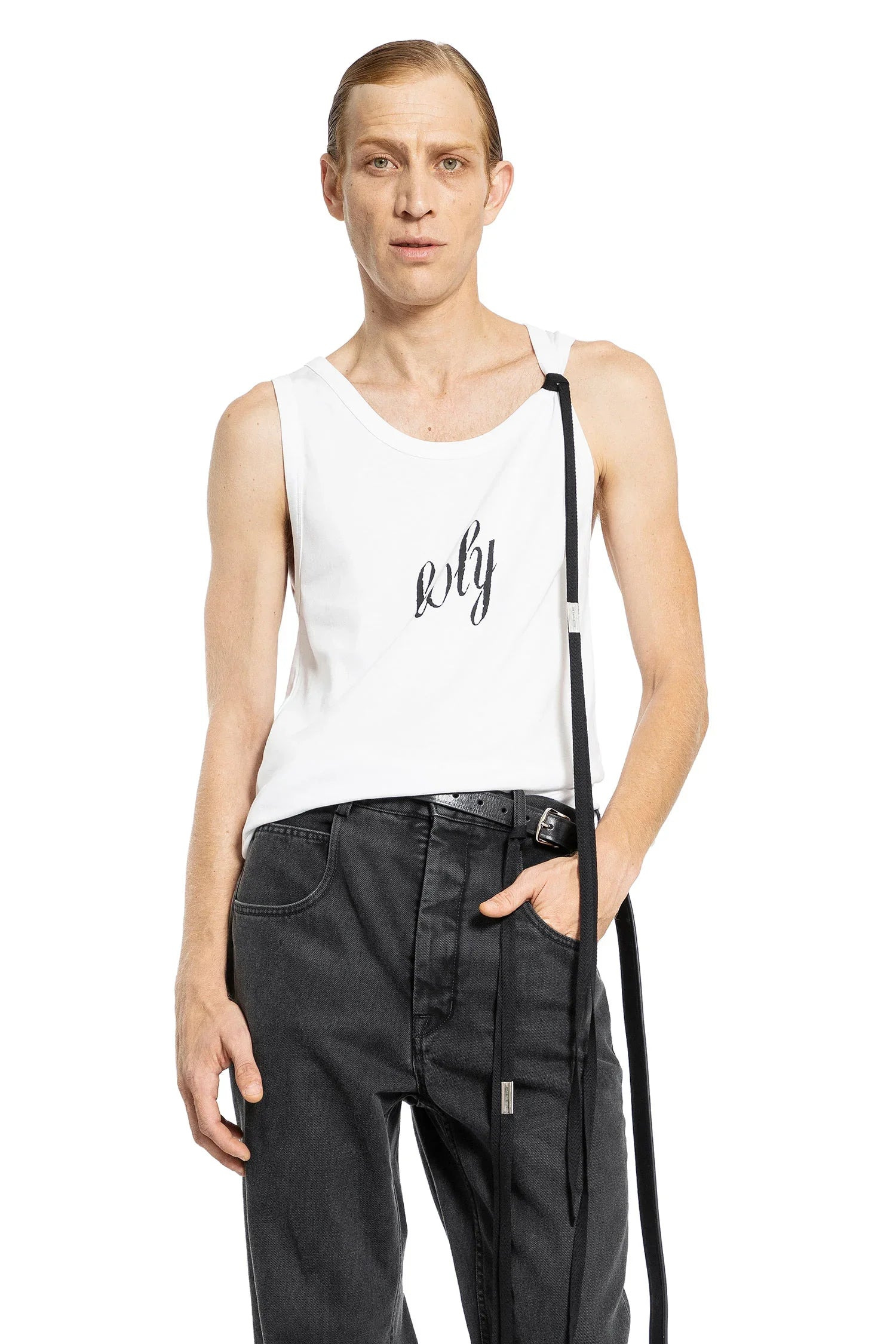 DESCRIPTION - white - cotton jersey - scoop neck - removable signature grosgrain ribbon - front holy print - sleeveless - racer back - The fit of this item is oversized. Keep this in mind when choosing your size. - Adjustable using the ribbons at the back. DETAILS - Made in: Portugal - Composition: 100% Cotton - Model code: B0012393FA045 001 - Item ID: 9055210176854 SIZE & FIT Model wears size M Model Height 188 cm Chest 91 cm Waist 70 cm Hips 92 cm