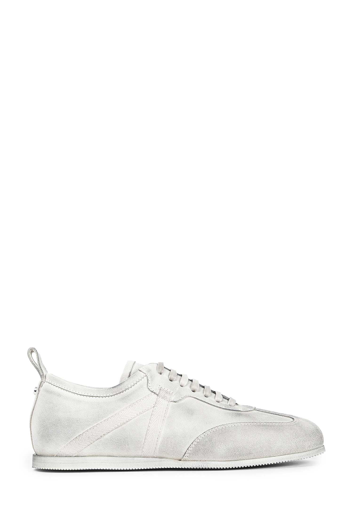 DESCRIPTION - Chalk - Calf suede - Back Signature Rivet - Back Pull Tab - Lace Closure - Side signature grosgrain ribbon - Rubber Sole DETAILS - Made in: Italy - Composition: 100% Calfskin - Model code: B0012567LT147 004 - Item ID: 9871047164246