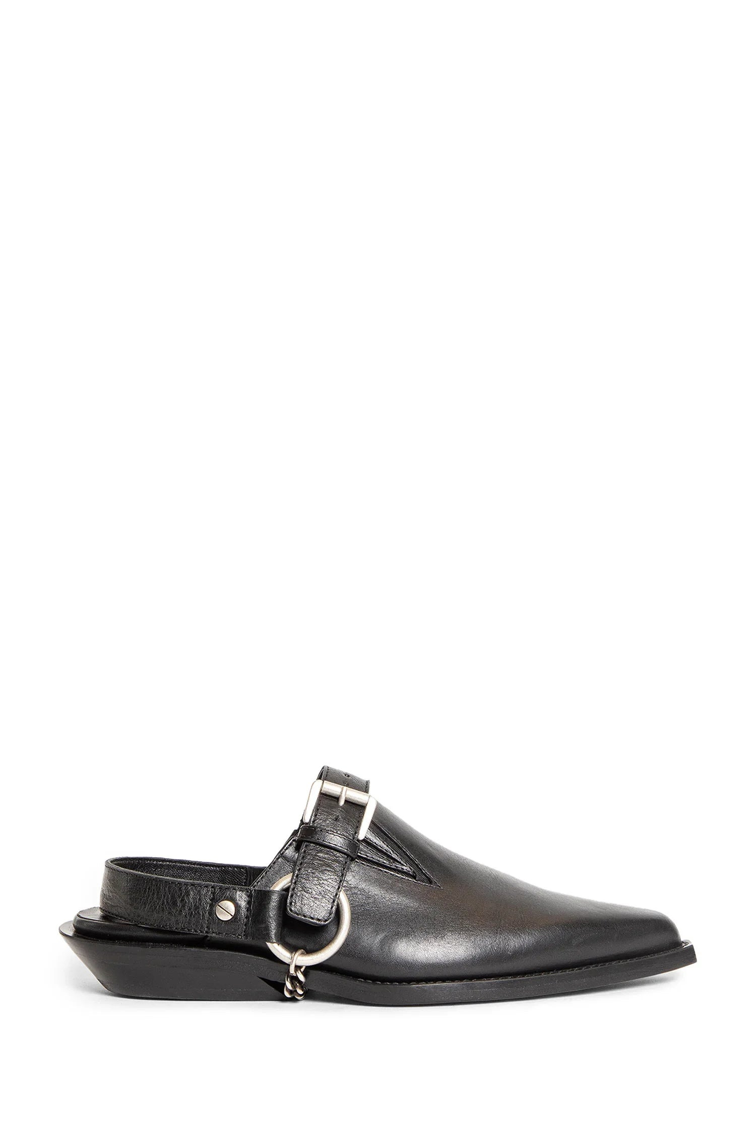 DESCRIPTION - Black - Nappa leather - Pointed toe - Slingback strap with signature metal rivets - Side elastic gussets - Buckled leather strap - Side metal rings with link chain - Leather sole - Slanted block heel DETAILS - Made in: Italy - Composition: 100% Bovine Leather - Model code: B0012924LT164 099 - Item ID: 9480104018262