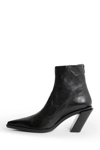 DESCRIPTION - Black - Washed Nappa - Pointed toe - Back zip closure - Slanted Heel - Ann Demeulemeester shoes embody the essence of luxury and comfort. The generously wide fit is a design choice aimed at ensuring a comfortable wear. For those who prefer a snugger fit, we recommend using an insole. Crafted from the highest quality leather, it is natural for the shoes to feel stiff initially. By wearing and walking in them, they will perfectly mold to the shape of your feet, offering unparalleled comfort. DETAILS - Made in: Italy - Composition: 100% Lambskin - Model code: B0011230LT111 099 - Item ID: 7556299456690
