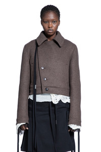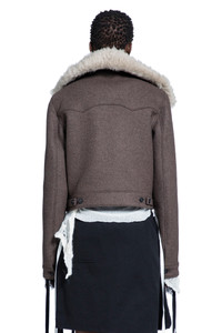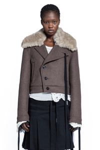 DESCRIPTION - Beaver - Removable shearling collar - Removable signature grosgrain ribbon - Double-breasted - Button closure - Side pockets - Buttoned cuffs - Back buttoned waist tabs - Cropped hem - Boxy fit DETAILS - Made in: Italy - Composition: 75% Wool 23% Polyamide 2% Other Collar: 100% Shearling - Model code: B0013589FA674 060 - Item ID: 9828518854998 SIZE & FIT Model wears size 40 Model Height 177 cm Bust 74 cm Waist 58 cm Hips 85 cm