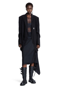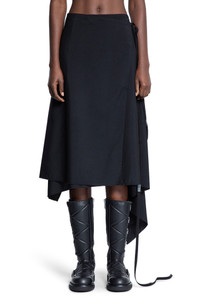 DESCRIPTION - Black - Wool twill - Front wrap - Side grosgrain drawstring waist - Back draped panel - Asymmetric raw-edge hem DETAILS - Made in: Italy - Composition: 100% Virgin Wool - Model code: B0012264FA646 099 - Item ID: 9689932431702 SIZE & FIT Model wears size 38 Model Height 180 cm Bust 77 cm Waist 57 cm Hips 97 cm