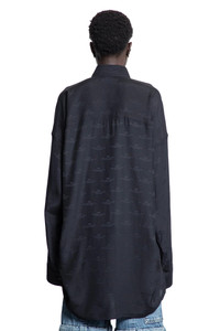 DESCRIPTION - Black - All over logo print - Button-down collar - Button closure - Dropped shoulders - Long sleeves - Buttoned cuffs - Side splits - Rounded hem - Oversized fit DETAILS - Made in: Italy - Composition: 100% Silk - Model code: 773300TRN07 1000 - Item ID: 9465274630486 SIZE & FIT Model wears size S Model Height 177 cm Bust 77 cm Waist 59 cm Hips 86 cm