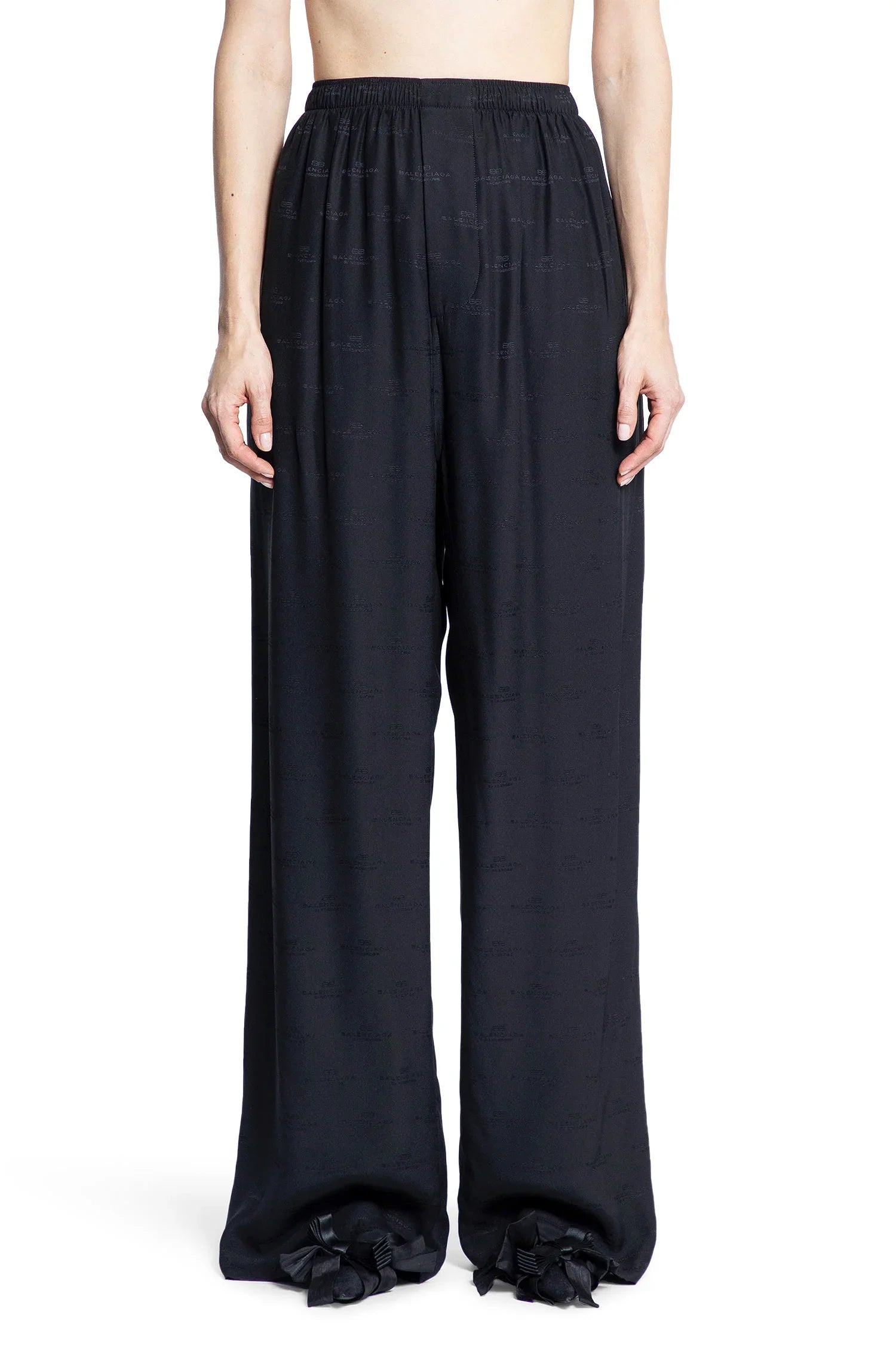 DESCRIPTION - Green - All over logo print - Mid-waist - Elastic waistband with drawstrings - Side pockets - Back pocket - Large fit - Floor length DETAILS - Made in: Italy - Composition: 100% Silk - Model code: 814016TRN07 1000 - Item ID: 9383432356182 SIZE & FIT Model wears size M Model Height 180 cm Bust 82 cm Waist 63 cm Hips 87 cm