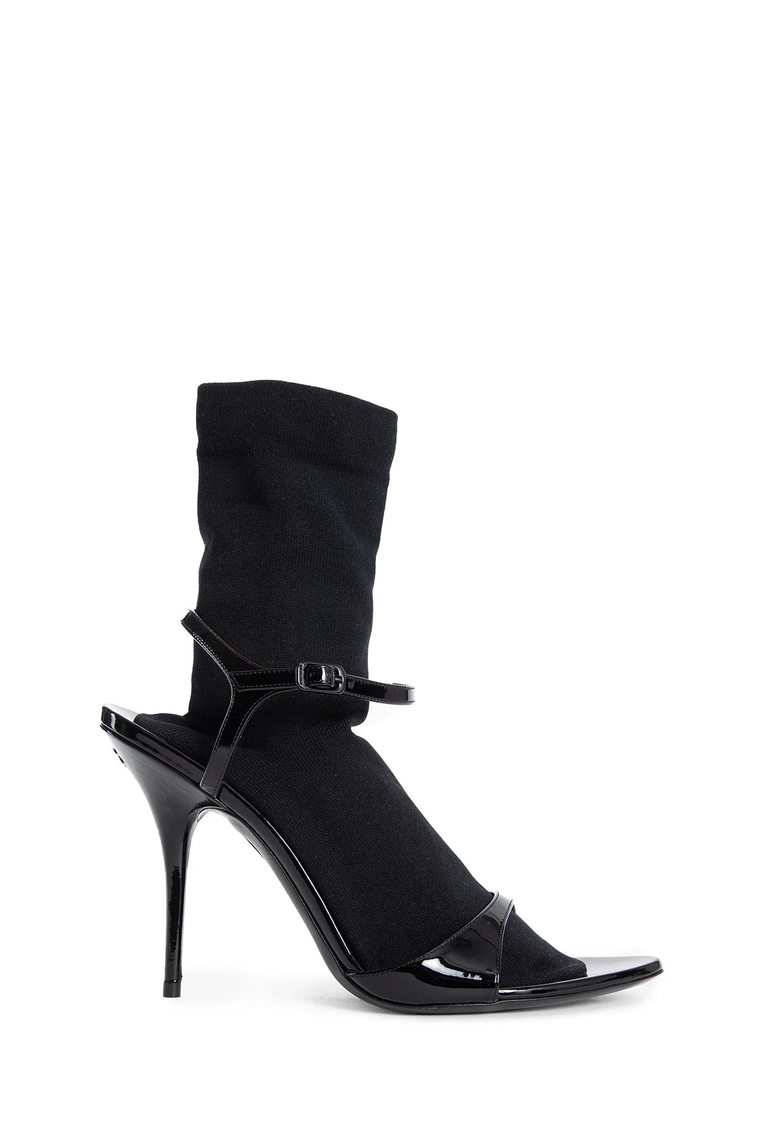 DESCRIPTION - Black - Patent leather - Stretch nylon sock liner - Buckled ankle strap - Leather sole - Stiletto heel DETAILS - Made in: Italy - Composition: 100% Calfskin Sock: Nylon/Elastane - Model code: 810517W12H2 1010 - Item ID: 9432104993110