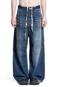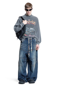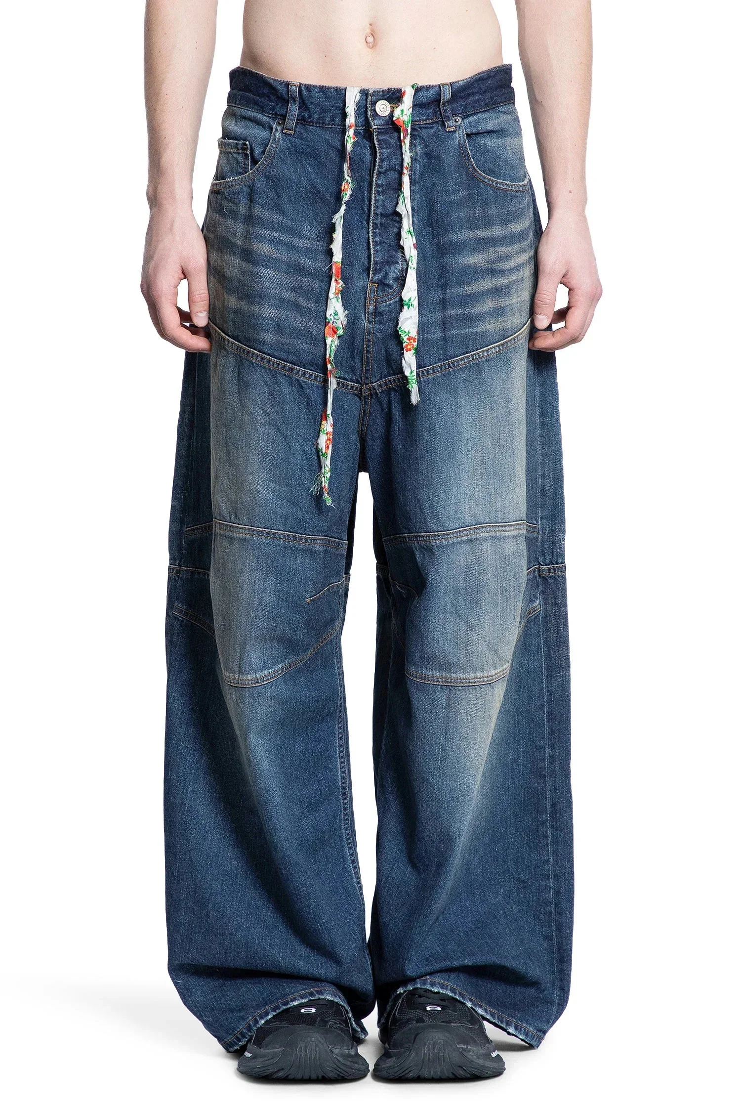 DESCRIPTION - Blue - Washed denim - Belt holes - Internal drawstrings closure - Button and zip closure - 5 pockets - Drop crotch - Workwear panels - Baggy fit DETAILS - Made in: Japan - Composition: 100% Cotton - Model code: 814161TRW62 3020 - Item ID: 9386042523990 SIZE & FIT Model wears size M Model Height 187 cm Chest 90 cm Waist 73 cm Hips 92 cm