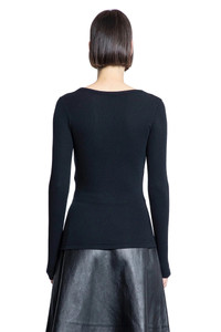 DESCRIPTION - Black - Stretch rib modal jersey - Scoop neck - Front bb embroidery - Dropped shoulders - Long sleeves - Fitted DETAILS - Made in: Italy - Composition: 95% Modal 5% Elastane 100% Polyester - Model code: 811915TRVR1 1000 - Item ID: 9383432028502 SIZE & FIT Model wears size S Model Height 180 cm Bust 82 cm Waist 63 cm Hips 87 cm