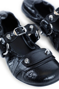 DESCRIPTION - Black - Arena lambskin - Aged metal studs and buckles - Buckled ankle strap - Rubber sole DETAILS - Made in: Italy - Composition: 100% Lambskin - Model code: 828095WAD4Y 1080 - Item ID: 9582475968854