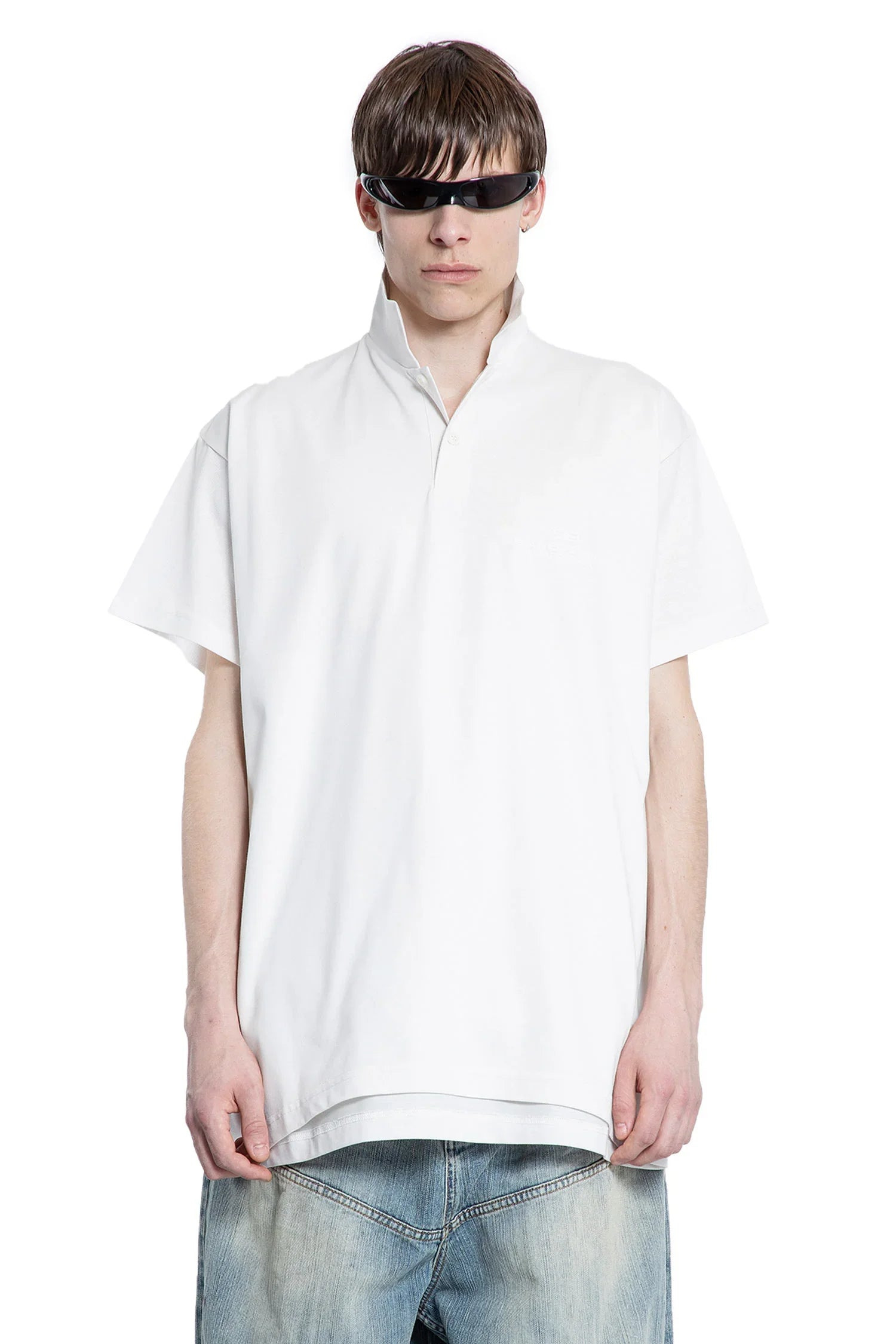 DESCRIPTION - Runway style - Dirty white - Cotton pique - Trompe l'œil, double front - Collar - Quarter-button closure - Chest BB Garderobe embroidery - Dropped shoulders - Short sleeves - Layered hem - Large fit DETAILS - Made in: Italy - Composition: 100% Cotton - Model code: 813299TRVW4 9012 - Item ID: 9515093688662 SIZE & FIT Model wears size 1 Model Height 186 cm Chest 88 cm Waist 72 cm Hips 92 cm