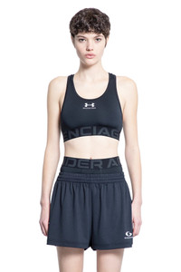 DESCRIPTION - In collaboration with under armour - Black - Stretch nylon jersey - Scoop neck - Front collaboration logo prints - Sleeveless - Racer back - Elastic balenciaga jacquard waistband - Cropped hem DETAILS - Made in: Italy - Composition: 85% Polyester 15% Elastane - Model code: 8142974E9B3 1062 - Item ID: 9361044177238 SIZE & FIT Model wears size S Model Height 178 cm Bust 85 cm Waist 73 cm Hips 92 cm