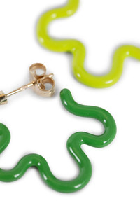 DESCRIPTION - Multicolor - Lime/green - Asymmetric 2-tone earrings - Pin closure - For pierced ears - Sold as pair - Please note that slight change in colour and traces of the artisanal process are inherent features of this type of process. DETAILS - Made in: Italy - Composition: 9kt yellow gold 925 Silver - Model code: GE201YGCC3 - Item ID: 9346743992662
