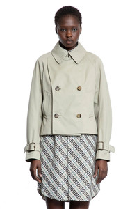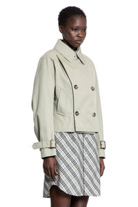 DESCRIPTION - Skylark - Collar - Water-repellent cotton blend - Double-breasted - Button closure - Side pockets - Raglan sleeves - Voluminous raglan sleeves - Buckled cuff straps - Cropped hem - Slim boxy fit DETAILS - Made in: United Kingdom - Composition: 65% Polyester 35% Cotton - Model code: 8106341 C2219 - Item ID: 9549223493974 SIZE & FIT Model wears size 8 Model Height 180 cm Bust 77 cm Waist 57 cm Hips 87 cm