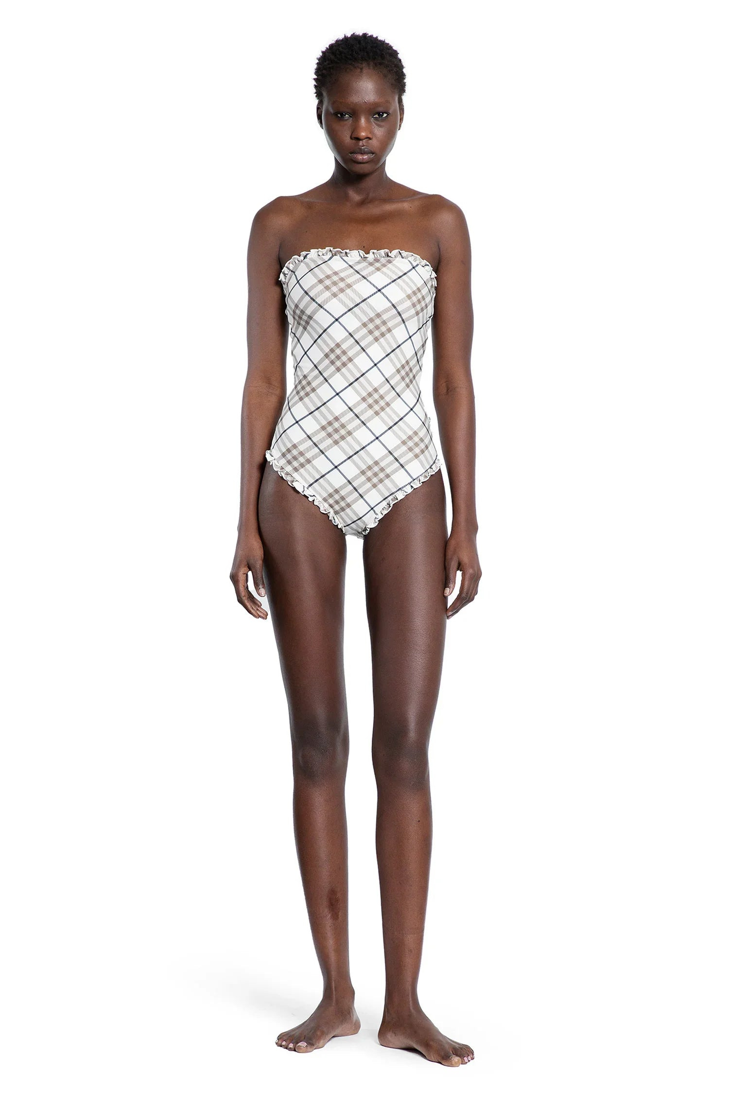 DESCRIPTION - Grey - Signature check - Frilled trim - Off-the-shoulders neckline DETAILS - Made in: Portugal - Composition: 80% polyamide 20% Elastane - Model code: 8109148 C2539 - Item ID: 9552281993558 SIZE & FIT Model wears size S Model Height 180 cm Bust 77 cm Waist 57 cm Hips 87 cm