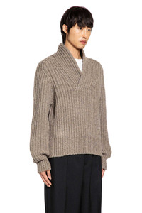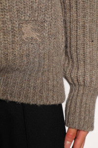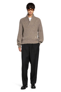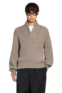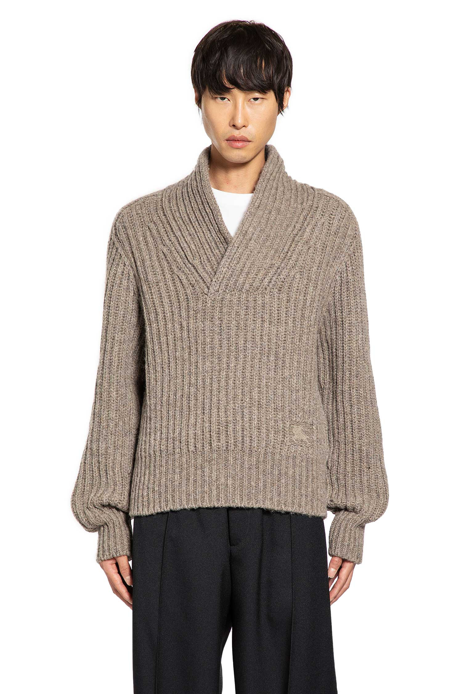 DESCRIPTION - Runway style - Beige melange - Heavyweight ribbed-knit wool - Shawl collar - Front signature equestrian knight jacquard - Dropped shoulders - Ribbed hem and cuffs - Regular fit DETAILS - Made in: Italy - Composition: 100% Wool - Model code: 8115221 A2954 - Item ID: 9837570523478 SIZE & FIT Model wears size M Model Height 188 cm Chest 88 cm Waist 69 cm Hips 88 cm