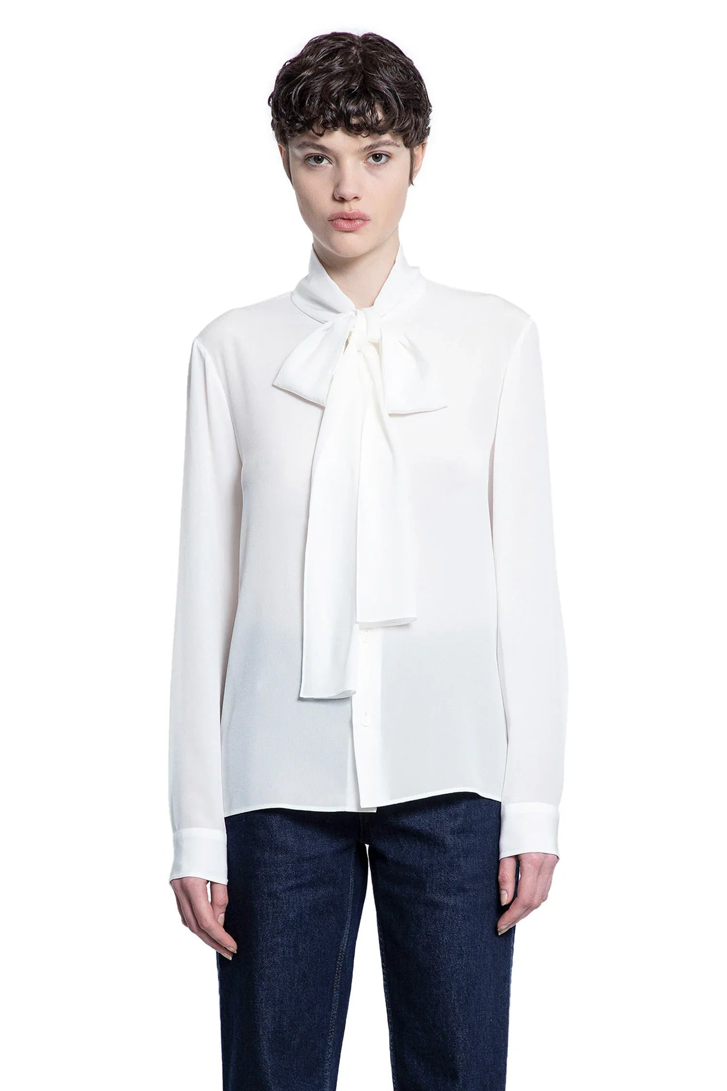 DESCRIPTION - Natural white - Crepe de chine - Lavalliere neck-tie - Long gathered sleeves - Buttoned cuffs - Gathered shoulders - Straight hem - Regular fit DETAILS - Made in: Italy - Composition: 100% Silk - Model code: 8102668 A1458 - Item ID: 9373538943318 SIZE & FIT Model wears size 6 Model Height 177 cm Bust 74 cm Waist 61 cm Hips 86 cm