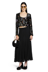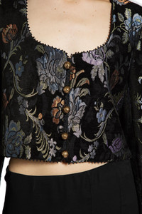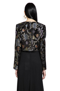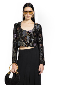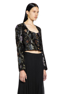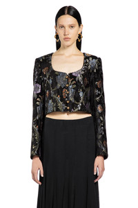 DESCRIPTION - Black - Cotton viscose twill - Floral silk brocade embroidery - Scoop neck - Gold-metal pumpkin button closure - Cropped hem - Fitted DETAILS - Made in: Italy - Composition: 62% Viscose 38% Cotton Fabric 2: 100% Silk - Model code: CH25WVE04333 0YA - Item ID: 9843873874262 SIZE & FIT Model wears size 36 Model Height 177 cm Bust 76 cm Waist 58 cm Hips 86 cm