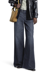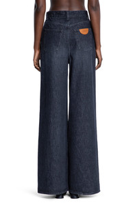 DESCRIPTION - Onyx black - Washed organic cotton denim - High-waisted - Belt holes - Button closure - 5 pockets - Back leather logo patch - Wide Leg - Slightly flared fit - Floor length DETAILS - Made in: Italy - Composition: 100% Cotton - Model code: CH25ADP02156 075 - Item ID: 9689927909718 SIZE & FIT Model wears size 26 Model Height 180 cm Bust 77 cm Waist 57 cm Hips 97 cm