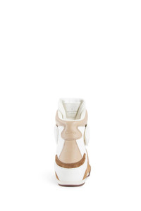 DESCRIPTION - Multicolor - White/natural brown/beige - Recycled mesh and smooth suede calfskin - Almond toe - Lace-up closure - Adjustable strap with debossed logo - High-top - Recycled sole and inner wedge - Rubber sole DETAILS - Made in: Italy - Composition: Textile/Leather/Rubber - Model code: CHC25S07HPL 243 - Item ID: 9328220307798