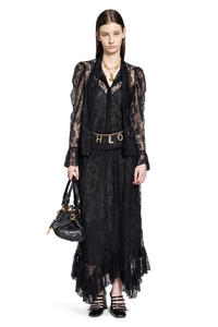DESCRIPTION - Black - Floral lace - Elasticated waistband - Gathered - Silk blend shorts lining - Asymmetric ruffled hem - Flounced fit DETAILS - Made in: Italy - Composition: 100% Polyamide Lining: 68% Acetate 32% Silk - Model code: CH25AJU02328 001 - Item ID: 9908021789014