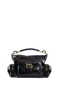 DESCRIPTION - Black - Natural shiny buffalo leather - Adjustable and removable shoulder strap - Removable top handle - Zip closure - Front buckled flap pocket - Side zipped pockets with buckled flap pocket overlays - Canvas lining - Internal flap pocket DETAILS - Made in: Italy - Composition: 100% Calfskin - Model code: CHC24AS533N83 001 - Item ID: 9203921682774