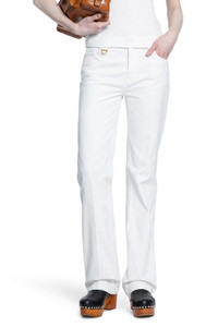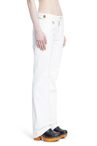 DESCRIPTION - Iconic milk - Cotton canvas - Belt holes - Side buttoned waist tabs - Front gold-metal d-ring - Button closure - 5 pockets - Straight leg DETAILS - Made in: Italy - Composition: 100% Cotton - Model code: CH25SPA12365 107 - Item ID: 9498215416150 SIZE & FIT Model wears size 36 Model Height 180 cm Chest 82 cm Waist 58 cm Hips 90 cm