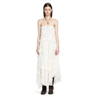 DESCRIPTION - iconik milk - Floral embroidered lace - Ruffled trim - Square neck - Knotted shoulder straps - Gathered - Long fluid fit DETAILS - Made in: Italy - Model code: 100% Silk 82% Cotton - Item ID: 9908022903126