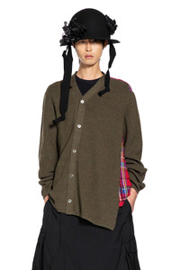 DESCRIPTION - Multicolor - KHAKI/red - Knit - Checkered panel - Button closure - V-neck - Ribbed hem and cuffs - Asymmetric cut DETAILS - Made in: Japan - Composition: 100% Wool - Model code: PPN005W25 1 - Item ID: 9780301791574 SIZE & FIT Model wears size M Model Height 188 cm Chest 88 cm Waist 69 cm Hips 88 cm