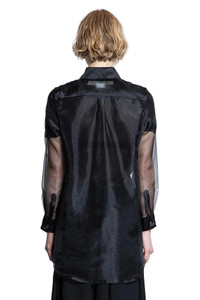 DESCRIPTION - Black - Lightweight Wool mesh - Tulle overlay - Classic collar - Button closure - Dropped shoulders - Long and short sleeves - Buttoned cuffs - Curved hem - Oversized fit DETAILS - Made in: Japan - Composition: 100% Wool 100% Polyamide - Model code: GOB016S25 1 - Item ID: 9534370349398