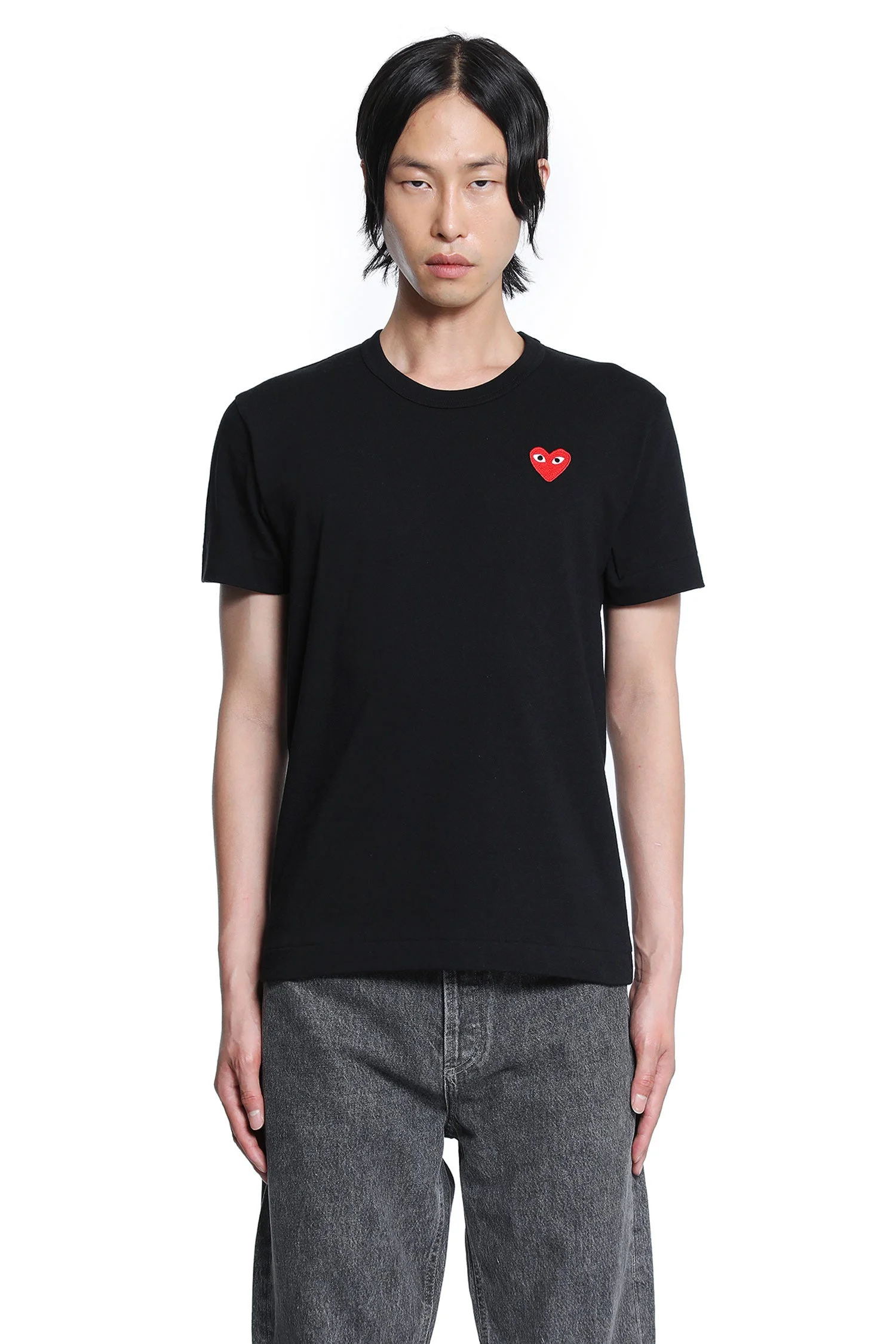 DESCRIPTION - Black - Cotton jersey - Round neck - Chest signature heart embroidery - Short sleeves - Slim fit DETAILS - Made in: Japan - Composition: 100% Cotton - Model code: AXT108051 BLACK - Item ID: 9710593245526 SIZE & FIT Model wears size S Model Height 188 cm Chest 88 cm Waist 69 cm Hips 88 cm