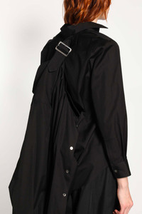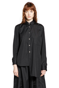 DESCRIPTION - Black - Nylon poplin - Classic collar - Button closure - Chest pocket - Long sleeves - Back buckled strap - Back spliced shirt panel - Asymmetric hem DETAILS - Made in: Japan - Composition: 100% Polyester - Model code: GPB013 BLACK - Item ID: 9793811382614 SIZE & FIT Model wears size S Model Height 180 cm Bust 82 cm Waist 69 cm Hips 88 cm