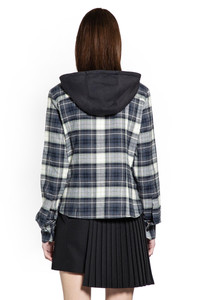 plaid-pattern hooded shirt