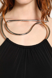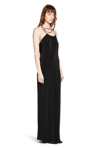 DESCRIPTION - Black - Signature metal necklace halterneck - Soft and flowy polyester jersey - Sleeveless - Open back - Column silhouette - Straight fit - Draped - Floor length DETAILS - Made in: France - Composition: 100% Polyester - Model code: COPR207F5022 BLK - Item ID: 9799783678294