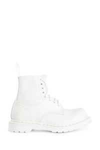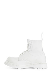 DESCRIPTION - In collaboration with Dr. Martens - White - Smooth leather - Back pull tab - Lace-up closure - Side embossed numeric logo - Rubber sole DETAILS - Made in: Thailand - Composition: 100% Calfskin - Model code: SH3WU0013P7006 HB009 - Item ID: 9719126524246