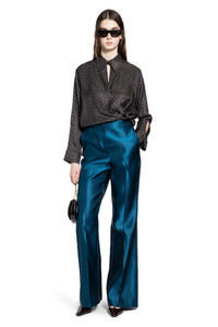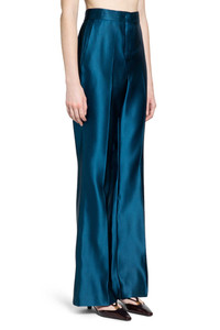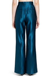 DESCRIPTION - Runway style - Teal - Silk duchesse satin - High-waisted - Hook and zip closure - Stitched leg crease - Back pockets - Flared leg DETAILS - Made in: Italy - Composition: 100% Silk - Model code: FR6648A9DG F0RP6 - Item ID: 9875660767574