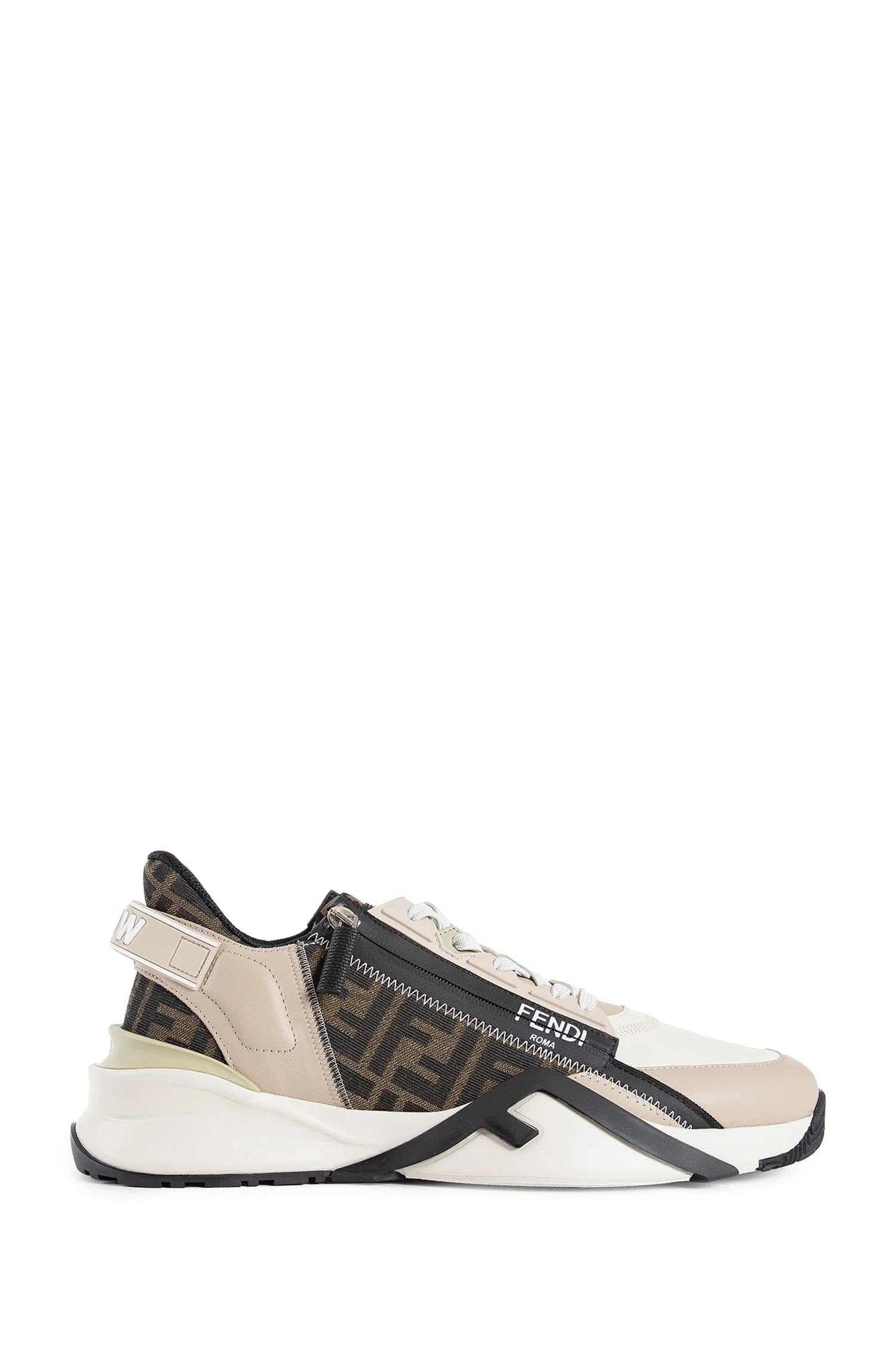 DESCRIPTION - Beige - Ff jacquard and smooth leather - Back ''Flow'' rubber pull tab - Lace closure - Side zip closure - Rubber sole DETAILS - Made in: Italy - Composition: 65% Polyester 35% Cotton 100% Calfskin - Model code: 7E1392AJZH F1OU2 - Item ID: 9478821151062