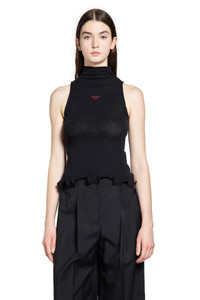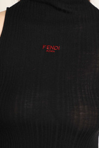 DESCRIPTION - Black - Lightweight ribbed wool knit - Turtleneck - Front fendi roma embroidery - Sleeveless - Ruffled hem - Fitted DETAILS - Made in: Italy - Composition: 100% Wool - Model code: FS9740AVFE F0GME - Item ID: 9871476851030