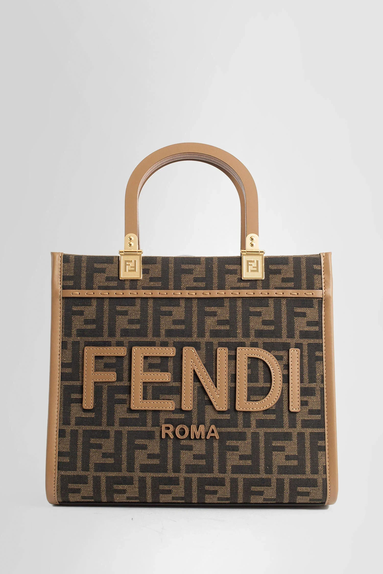 DESCRIPTION - Brown - Ff jacquard canvas - Leather trim - Front leather fendi roma lettering patches - Rigid plexiglass top handles - Adjustable and removable shoulder strap DETAILS - Made in: Italy - Composition: 27% Polyester 27% Polyamide 27% Polyurethane 15% Cotton 4% Resin - Model code: 8BH394ALVY F1GE3 - Item ID: 8577617396054