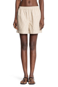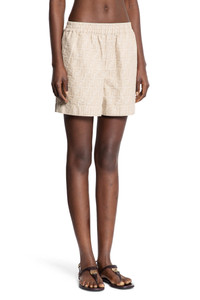 DESCRIPTION - Beige - Ff chambray denim - Elastic waistband with drawstrings - Side pockets - Straight leg - Relaxed fit DETAILS - Made in: Italy - Composition: 74% Cotton 26% Linen - Model code: FLP870ASMF F1SAZ - Item ID: 9679334375766 SIZE & FIT Model wears size 40 Model Height 180 cm Bust 77 cm Waist 57 cm Hips 87 cm