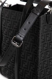 DESCRIPTION - Black - Up-Cycled Fabric - All-Over Jaquard Ff - Removable Leather Shoulder Strap - Leather Top Handles - Internal Zipped Pocket DETAILS - Made in: Italy - Composition: 62% Polyester 33% Cotton 5% Resins - Model code: 7VA390AG0M F0NPN - Item ID: 8584860893526