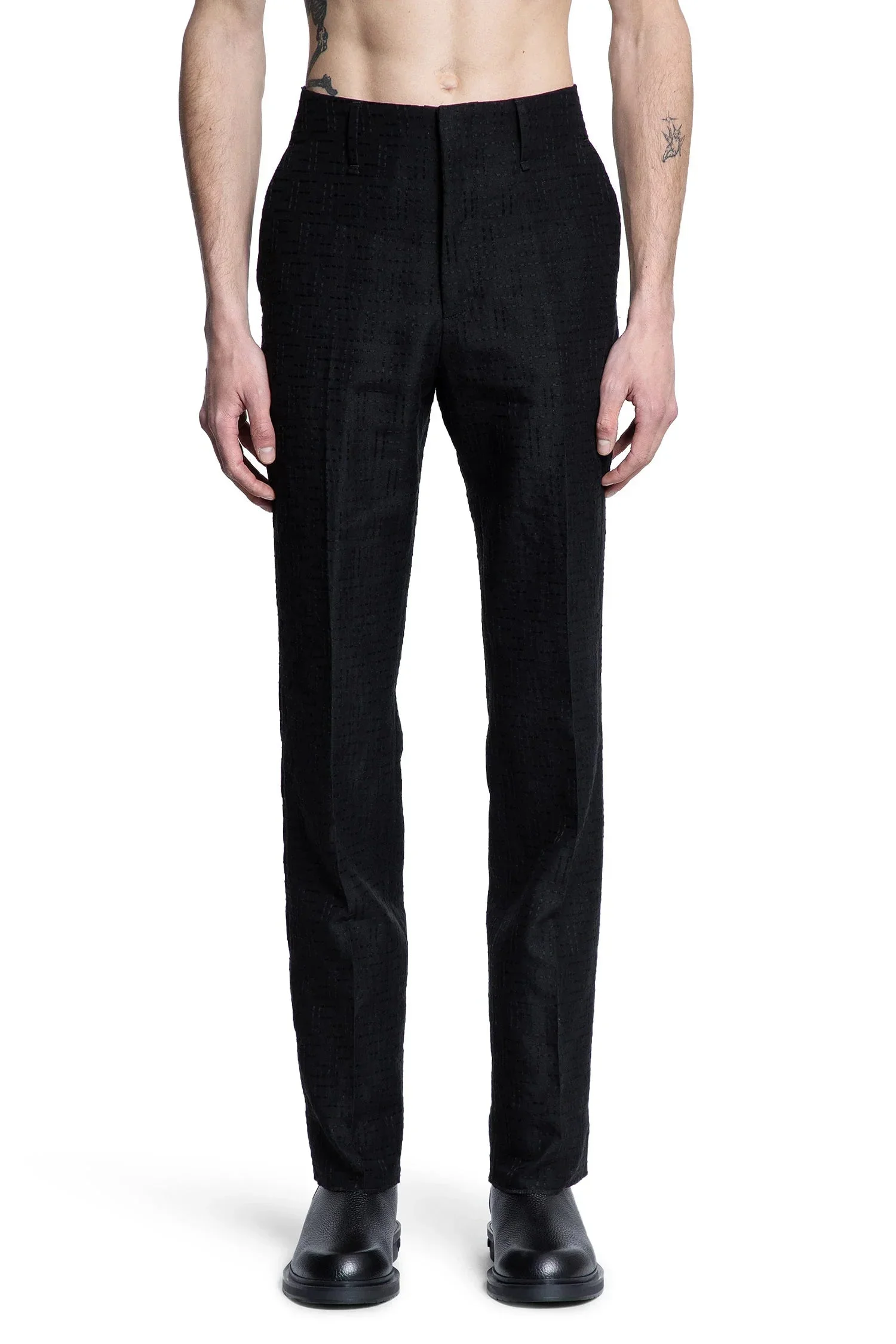 DESCRIPTION - Runway style - Black - Ff linen jacquard - Belt holes - Hook and zip closure - Leg crease - Side pockets - Back pockets - Straight leg - Slim fit DETAILS - Made in: Italy - Composition: 83% Linen 17% Cotton - Model code: FB1029AU6Y F0QA1 - Item ID: 9521883906390 SIZE & FIT Model wears size 46 Model Height 189 cm Chest 88 cm Waist 69 cm Hips 88 cm