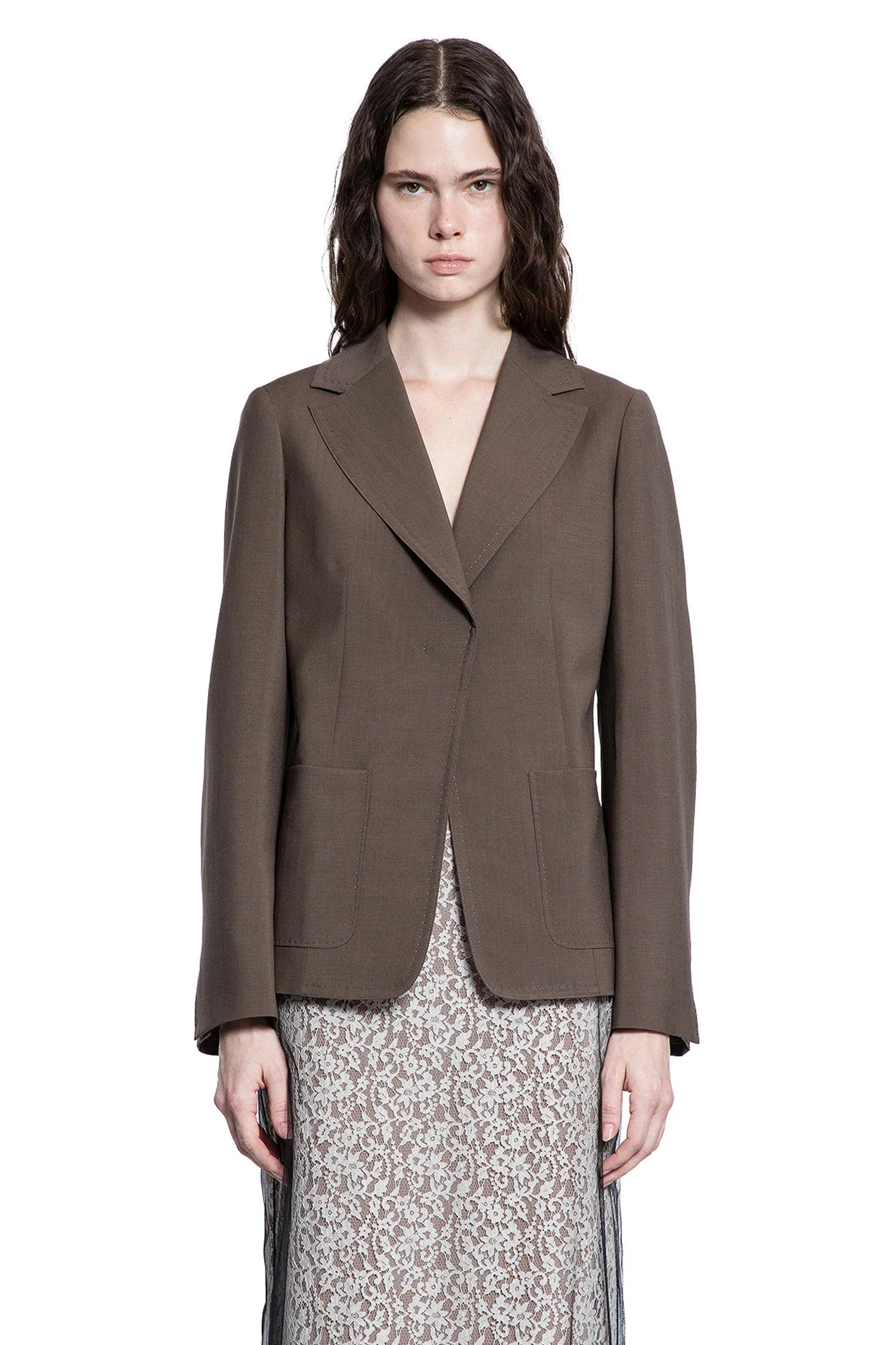 DESCRIPTION - Runway style - Dark green - Wool mohair twill - Notch lapels - Concealed button closure - Side pockets - Cuff splits - Back embroidered logo - Darted back - Cinched waist DETAILS - Made in: Italy - Composition: 75% Wool 25% Mohair - Model code: FJ7624AQ3H F1RXG - Item ID: 9517190775126 SIZE & FIT Model wears size 40 Model Height 181 cm Bust 83 cm Waist 57 cm Hips 88 cm