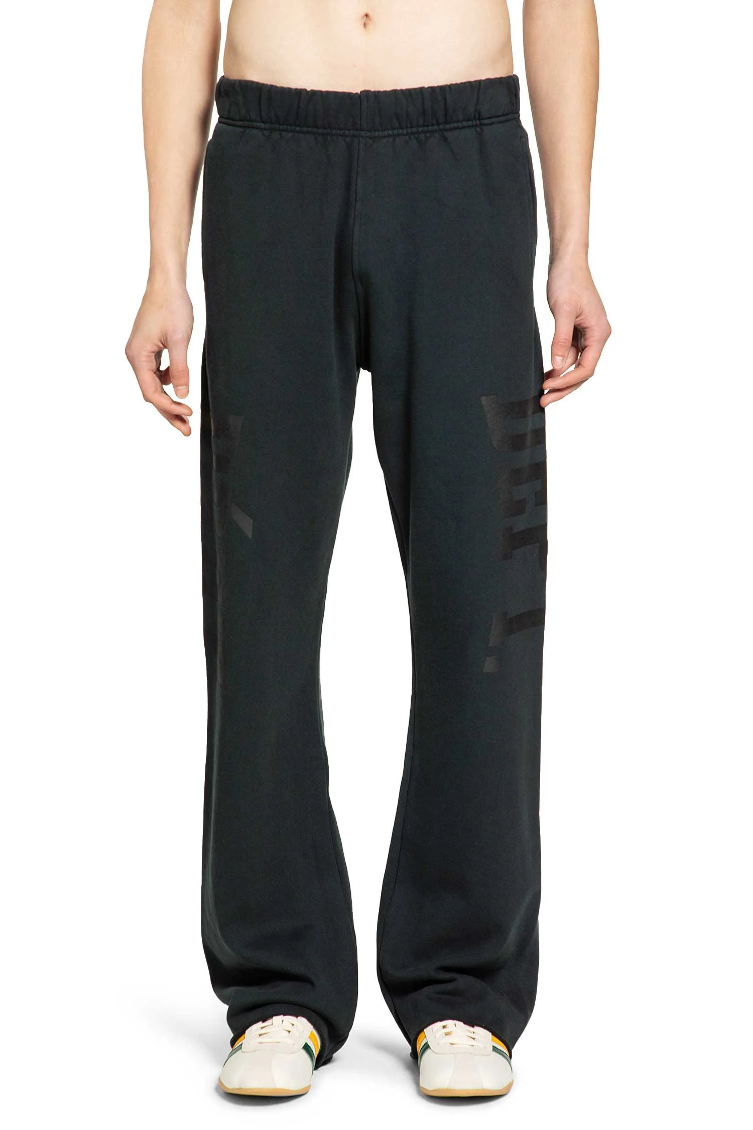 DESCRIPTION - The Dept. Post Workout Sweatpants take Gallery Dept. s studio-born irreverence and run it through a cleaner, more disciplined line. Cut in black cotton jersey, they hang long and bootcut, brushing the floor with raw-edge hems that feel intentionally unfinished rather than undone. The elastic waistband sits relaxed, balanced by a sharp side French Dept. print that reads like a quiet signature rather than branding. Straightforward, unfussy, and subtly subversive, the kind of piece that carries the label s art-meets-uniform energy without needing to explain itself. - Black - Cotton jersey - Elastic waistband with drawstrings - Side French Dept. logotype print - Side pockets - Raw-edge hems - Bootcut - Floor length DETAILS - Made in: United States - Composition: 100% Cotton - Model code: DPS40067 WASHEDBLACK - Item ID: 9984761037142