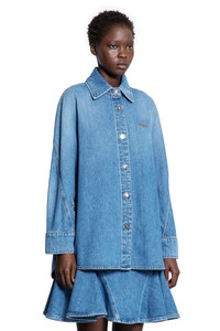 DESCRIPTION - Blue - Washed denim - Bias seams - Classic collar - Button closure - Givenchy paris chest embroidery - Dropped shoulders - Long sleeves - Buttoned cuffs - Back suede logo patch - Cocoon fit DETAILS - Made in: Romania - Composition: 100% Cotton - Model code: BW61G1516W 420 - Item ID: 9700191437142 SIZE & FIT Model wears size 36 Model Height 180 cm Bust 77 cm Waist 57 cm Hips 97 cm