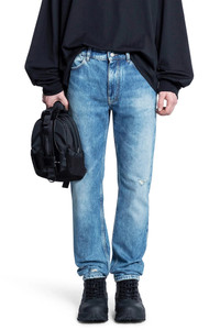 DESCRIPTION - Runway style - Ocean blue - Washed denim - Distressed details - Belt holes - Button and zip closure - Side pockets - Back embroidered signature logo - Back pockets - Slim fit DETAILS - Made in: Portugal - Composition: 100% Cotton - Model code: BM51HB5YB6 426 - Item ID: 9364057358678 SIZE & FIT Model wears size 30 Model Height 187 cm Chest 90 cm Waist 73 cm Hips 92 cm