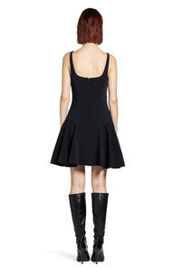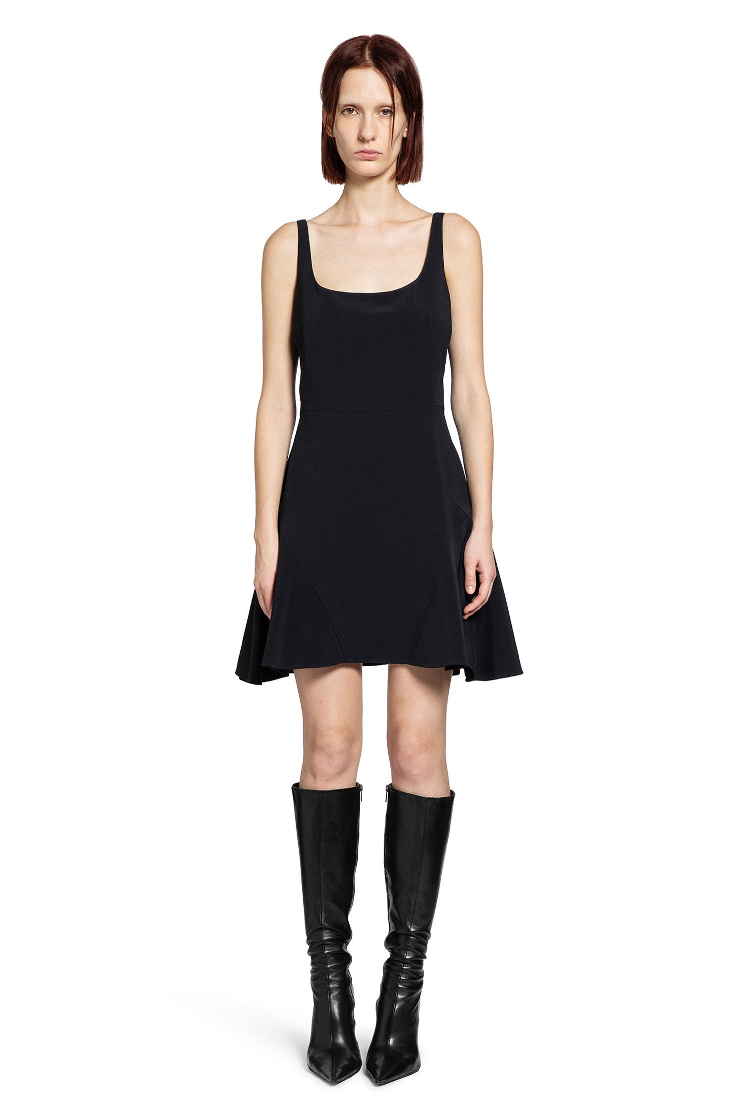 DESCRIPTION - Black - Square neck - Sleeveless - Back zip closure - Ruffled hem - Flared fit DETAILS - Made in: Italy - Composition: 65% Viscose 32% Acetate 3% Elastane - Model code: BW22H2164K 001 - Item ID: 9765183062358